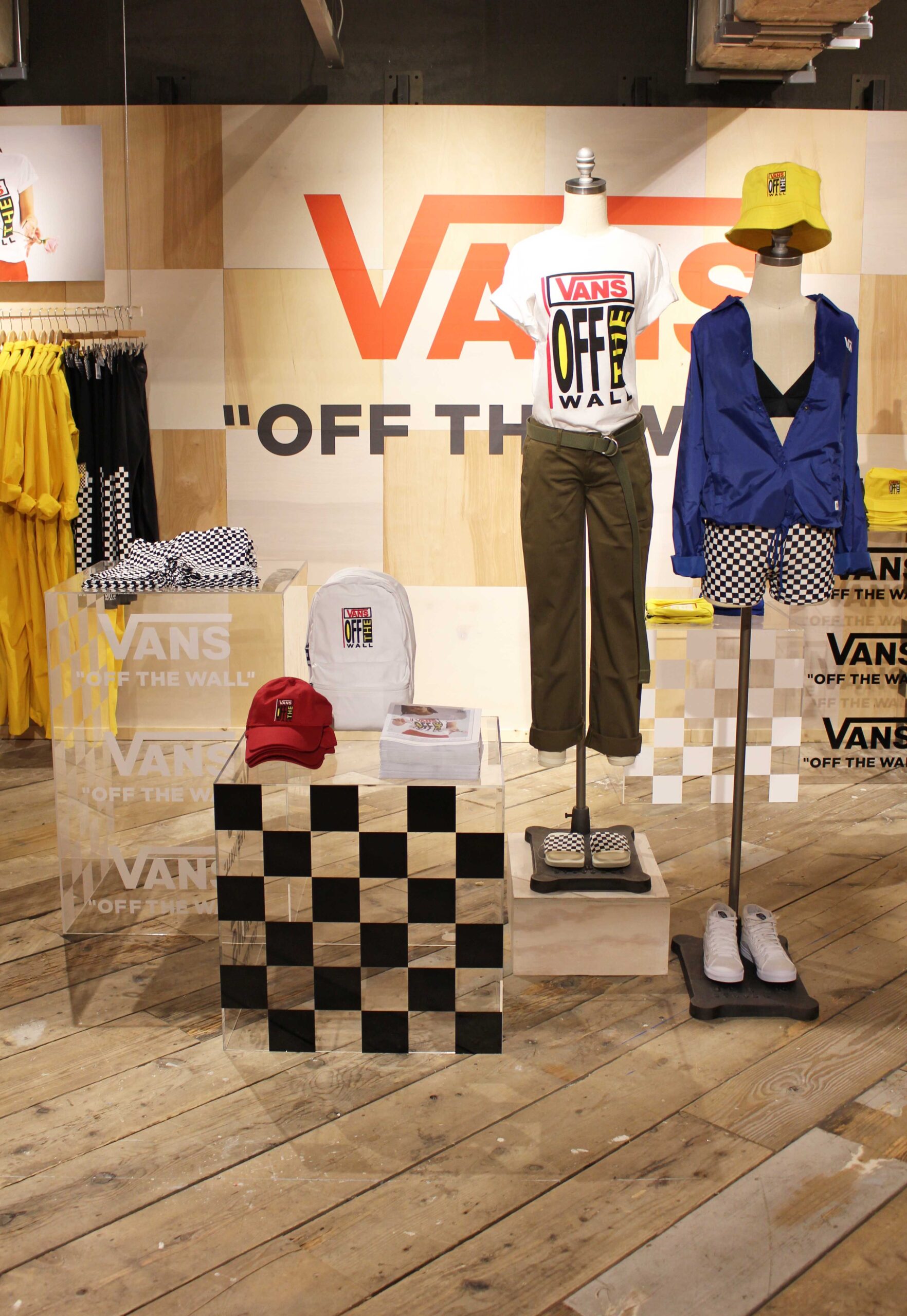 ✔ Diseño y construcción de "Waffle Walls" (muros texturizados) y mobiliario con patrones checkerboard que refuerzan el ADN de Vans de manera estructural.